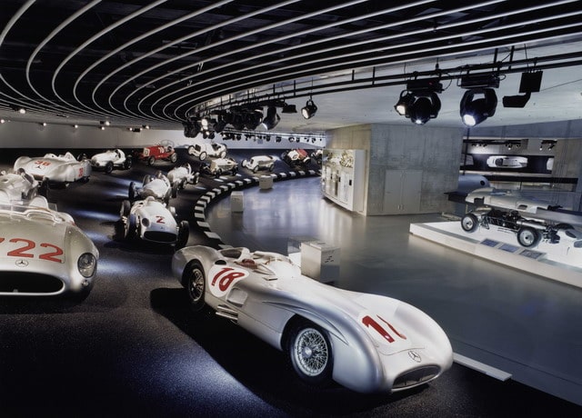 Il Museo Mercedes-Benz è l’unico al mondo a presentare uno spaccato degli oltre 125 anni di storia dell’industria automobilistica, dai suoi albori ad oggi. Lo spazio espositivo si sviluppa su una superficie di 16.500 metri quadrati distribuiti su nove piani all’interno dei quali i visitatori possono ammirare 1.500 pezzi, di cui 160 veicoli. La struttura vuole essere uno spazio consacrato all’innovazione, a testimonianza del fatto che – pur restando fedele al suo passato – il Marchio non ha mai smesso di guardare al futuro. L’esposizione non si limita a passare in rassegna l’avvincente storia del Marchio Mercedes-Benz, ma apre anche una finestra a 360 gradi sulla sua futura evoluzione. Anche il progetto architettonico, realizzato dall’UN studio di Ben van Berkel e Bos di Amsterdam, si ispira a questa idea di fondo. La struttura interna del museo simula, infatti, l’intreccio dei legamenti di una doppia elica di DNA, depositaria del patrimonio genetico umano. Letta in chiave metaforica essa riprende dunque l’idea di originalità del Marchio Mercedes-Benz: non smettere mai di reinventare l’automobile.