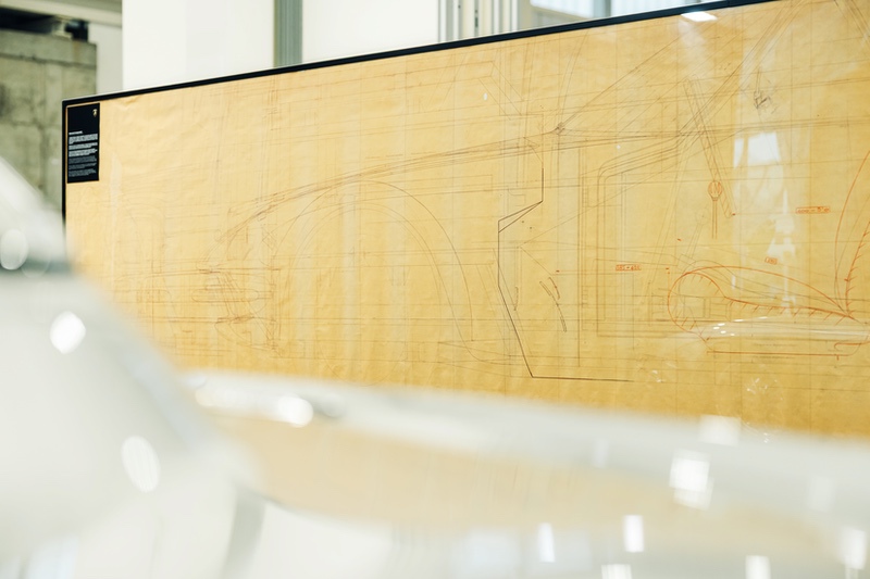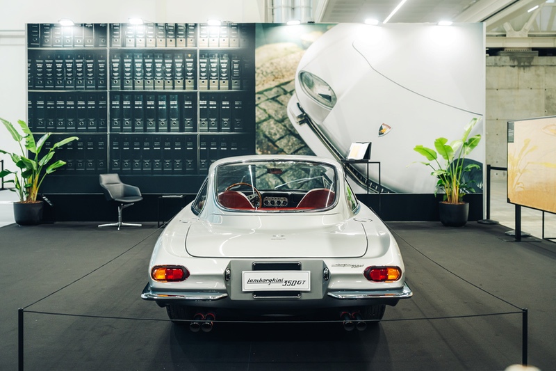 Accanto alla vettura è esposto un documento dal valore storico inestimabile: lo studio dell’abitabilità della 350 GT in scala 1:1, datato 1963, ovvero il progetto tecnico più antico custodito nell’Archivio Storico Lamborghini.