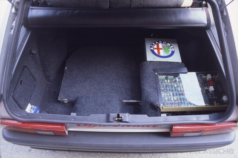 Il tutto era gestito dal sistema CEM (Controllo Elettronico del Motore), che Alfa Romeo aveva già sperimentato sull’Alfetta nel 1983 per ottimizzare l’iniezione e l’accensione, aumentando l’efficienza del motore termico. L’accoppiamento del motore elettrico al cambio avveniva tramite una cinghia dentata, permettendo al veicolo di funzionare in modalità solo elettrica, solo a benzina o combinata, realizzando così l’idea di propulsione ibrida.