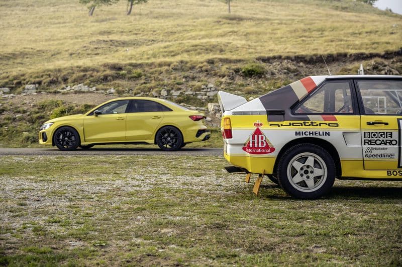 Inizialmente erogava 147 kW (200 CV). Nel 1983, il finlandese Hannu Mikkola vinse il titolo piloti nel Campionato del Mondo Rally con questa auto. Nello stesso anno, Audi introdusse la Sport quattro con carreggiata larga, che era più corta di 24 centimetri (9,45 pollici). Era alimentata da un’unità a cinque cilindri a quattro valvole appena sviluppata in alluminio con una potenza di 225 kW (306 CV). Ciò fece della Sport quattro l’auto più potente mai costruita fino ad allora da un’azienda tedesca per l’uso su strade pubbliche.
