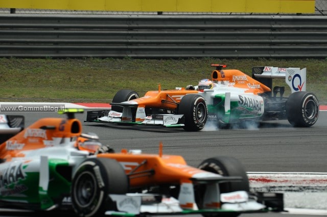 Il pilota della Force India, Paul di Resta, è stato l’unico pilota ad utilizzare una strategia ad una sosta, fermandosi per passare dalle morbide alle medie al giro 23, diventando il pilota che ha completato il run più lungo su ogni pneumatico: 23 giri sulle soft e 34 sulle medie. Di Resta ha concluso la gara settimo, solo due posizioni dietro il suo compagno di squadra, Nico Hulkenberg, con due soste, il cui quinto posto è stato anche il miglior risultato della carriera.