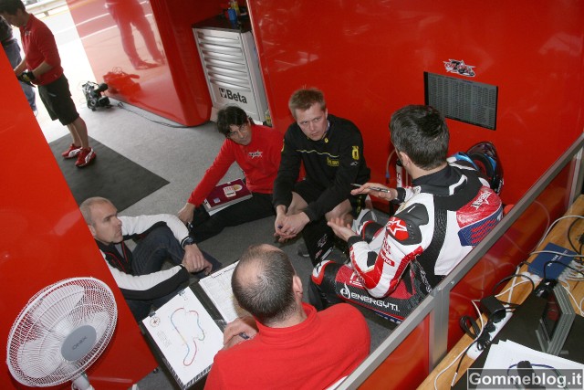 Nella prima sessione di prove della stagione, Checa ha iniziato bene ma un highside alla quinta curva, a metà sessione, gli ha fatto perdere tempo prezioso in pista. Purtroppo nella caduta Carlos ha battuto sia la testa che il piede destro. Grazie ad un miglior giro in 1’32.1 fatto segnare all’inizio della sessione, il pilota spagnolo ha concluso le prove in nona posizione. Dall’altro lato del box Badovini, soffrendo ancora per il dolore dovuto alla caduta della settimana scorsa, e’ stato in grado di completare otto giri prima di essere a sua volta vittima di una caduta, solo qualche minuto prima di Carlos. L’incidente, solo pochi giorni dopo quello precedente, non ha certo facilitato la situazione; Ayrton ha concluso con un miglior crono in 1’33.0, ottenuto nella prima fase della sessione.