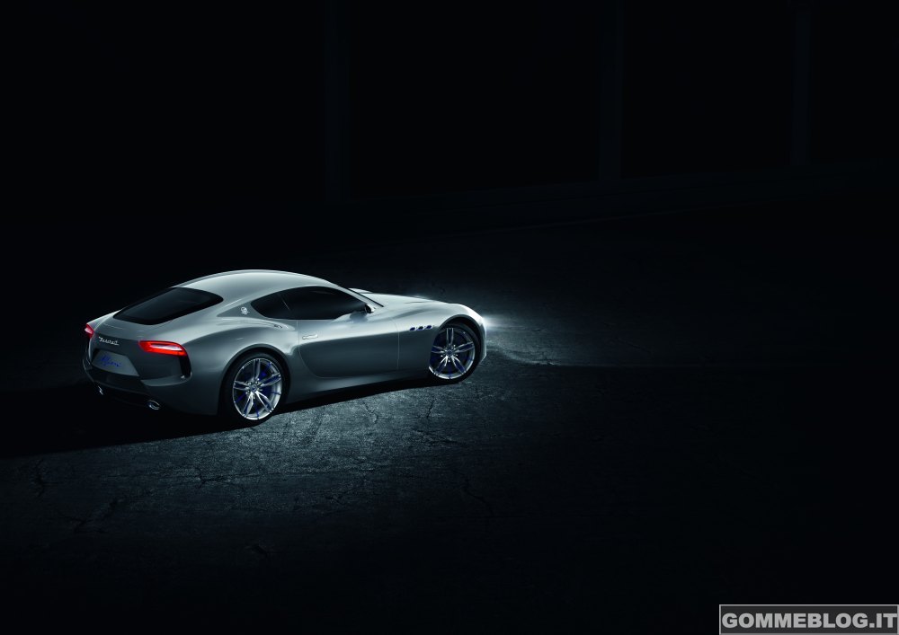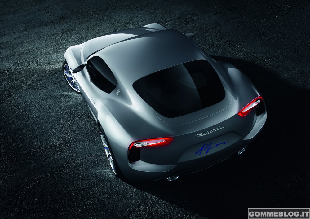 DNA da sportiva: L’Alfieri si basa sul telaio della GranTurismo MC Stradale con passo più corto di 24 centimetri. Le sue proporzioni sono quindi da vera supercar. L’Alfieri è lunga 4.590 mm, ha un passo di 2.700 mm, è larga 1.930 mm ed è alta 1.280 mm. Sotto l’elegante scocca si nasconde la piattaforma cambio-differenziale della Maserati GranTurismo. La forza motrice dell’Alfieri è rappresentata dal motore V8 aspirato da 4,7 litri Made in Maranello che eroga 460 CV a 7.000 giri/min e 520 Nm a 4750 giri/min. Grazie alla speciale configurazione degli scarichi, il raffinato V8 produce un rombo mozzafiato.