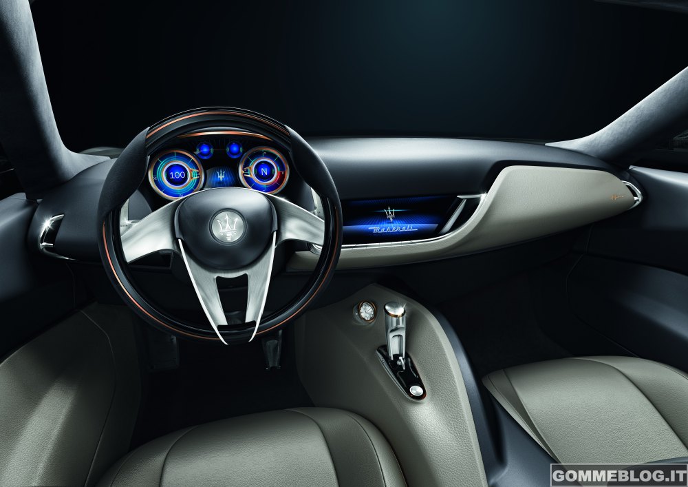 Interni minimal: Nell’abitacolo da 2+2 posti, semplicità e minimalismo sono i criteri che hanno ispirato i designer. La plancia sospesa si rifà concettualmente a quella della Maserati 5000GT. Il cockpit dal design pulito e ordinato a due tonalità circonda uno schermo TFT. La plancia strumenti presenta una configurazione classica con due strumenti indicatori principali separati da altri due più piccoli. Sul bordo di ognuno di essi è presente l’incisione in miniatura “Officine Maserati”.