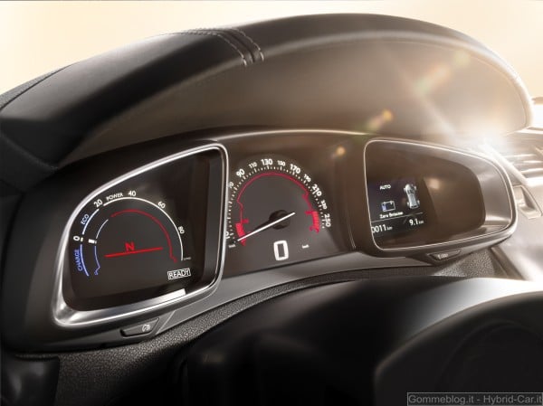 L’avviamento del veicolo è confermato dall’accensione di una spia READY sul quadro strumenti e da un segnale sonoro. Conducente e passeggeri hanno a disposizione tre fonti d’informazione: display centrale, quadro strumenti e sistema di proiezione su lama trasparente dei dati di guida. Queste informazioni offrono un miglior utilizzo della catena di trazione Hybrid4, in particolare con l’indicatore di consumo/generatore d’energia », che distingue i consumi dal recupero d’energia. Sul display centrale le informazioni sono proposte su due schermate. La prima indica la modalità di funzionamento scelta: una sagoma del veicolo rappresenta i passaggi tra motore termico, motore elettrico e pack batterie, con l’indicazione del livello di carica di quest’ultimo. Quando si spegne il motore termico viene indicato « Zero Emission ». La seconda pagina mostra un grafico che indica il livello medio dei consumi di carburante in tranche di 5 minuti, sull’ultima mezz’ora di utilizzo.