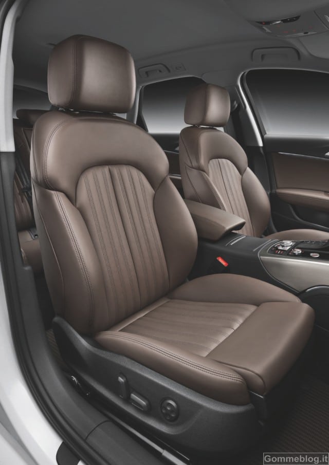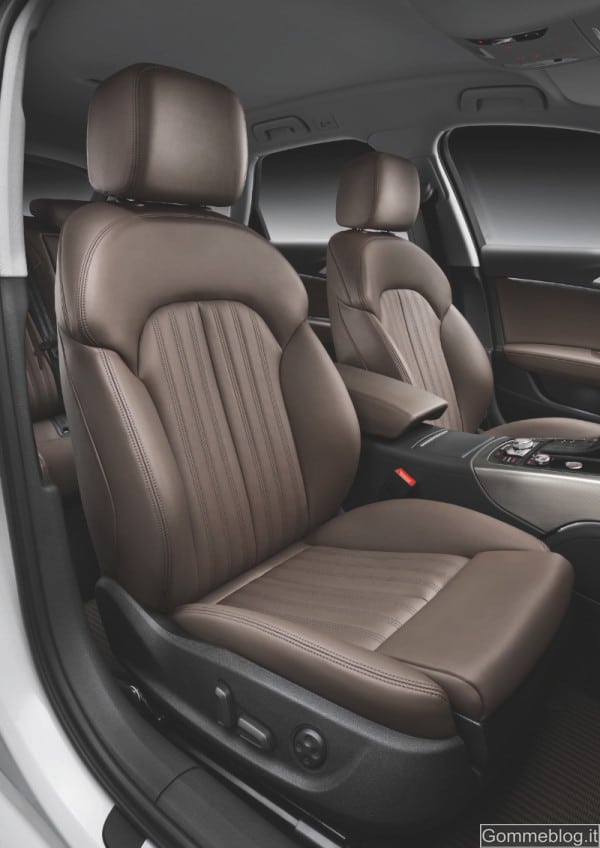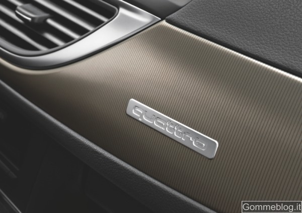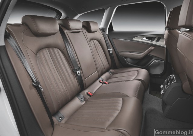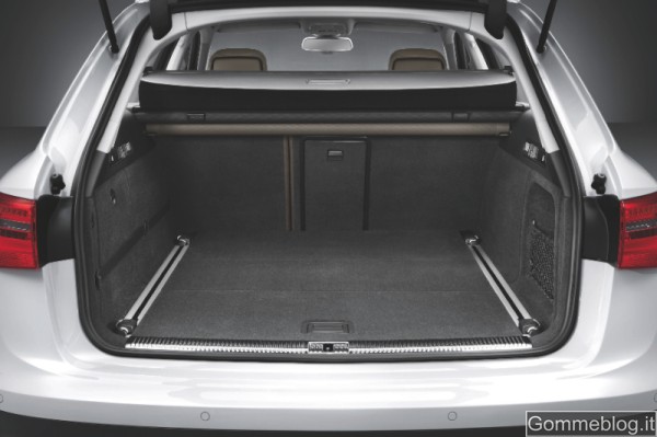 Tra gli elementi visivi che contribuiscono a differenziare la A6 allroad quattro ci sono la tappezzeria e il pannello strumenti, in colore nero. Tra le particolarità degli interni ci sono il colore specifico marrone Santos e le finiture il alluminio. Anche i battitacco sono in alluminio e sono impreziositi dalla scritta allroad. Il vano di carico della nuova A6 allroad quattro ha una capacità di 565 litri, appositi comandi posti nel vano rendono semplice ripiegare i sedili posteriori, portando la capacità complessiva a 1.680 litri. Un sistema di guide con annesso kit di fissaggio per suddividere lo spazio in base alle necessità, cinghie retrattili sul lato sinistro e piano di carico sdoppiato sottolineano la vocazione alla praticità del nuovo modello.