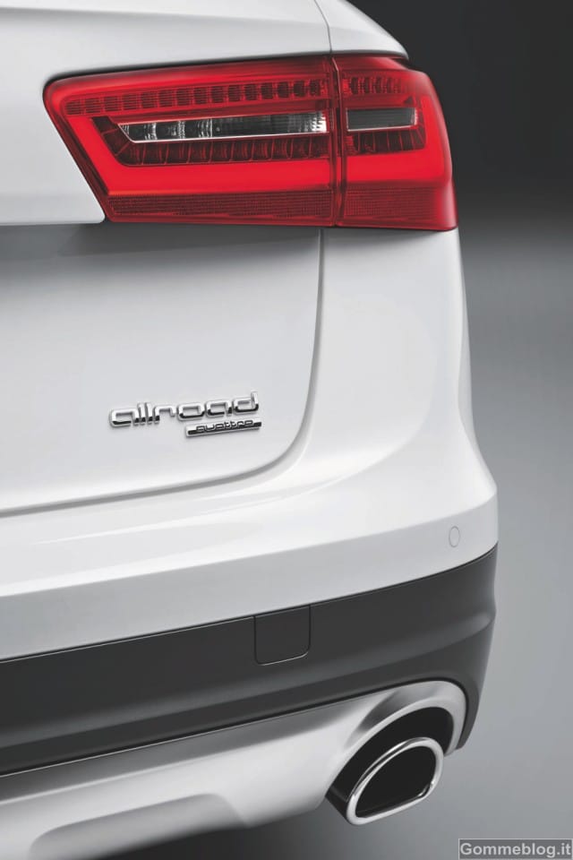 La Audi A6 allroad quatto ha una presenza su strada sportiva e distinta, con proporzioni bilanciate, linee tese che delineano superfici piatte e la linea del tetto che fluisce nei montanti posteriori fortemente inclinati. Audi offre la tecnologia LED (progressive) come opzione per le luci anteriori e posteriori. I fari xeno plus possono essere combinati con le luci adattative che assicurano sempre la migliore illuminazione del manto stradale. La distanza da terra della carrozzeria della nuova Audi A6 allroad quattro può essere fino a sei cm più alta di quella di una A6 Avant.