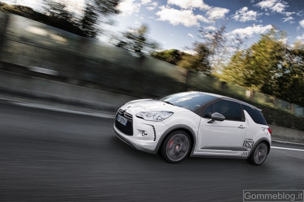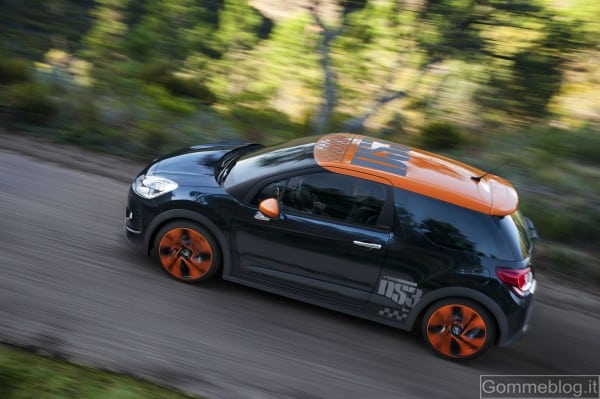 Citroën DS3 Racing, rappresenta la massima espressione del know-how tecnologico della Marca. Con la stessa passione che ha portato Citroën e Sébastien Loeb a conquistare vittorie su vittorie nel campionato del mondo WRC, (vedi l’ultima vittoria al Rally di Montecarlo 2012), Citroën DS3 Racing è stata studiata per garantire sensazioni di guida autentiche, altissime prestazioni e massimo dinamismo. Basata sulla versione top di gamma – la Citroën DS3 Sport Chic – la versione Racing sfoggia soluzioni decisamente sportive ed esclusive, quali finiture in carbonio ed equipaggiamenti derivati dalla competizione automobilistica. Preparato da Citroën Racing, il propulsore da 1,6 litri sviluppa 202 cavalli e raggiunge i 100 km orari in soli 6,5 secondi. Il telaio e gli assali sono il risultato di una messa a punto di alta precisione. Con una lunghezza di 3,96m, Citroën DS3 Racing è un vero e proprio concentrato di sportività̀. Riprende i codici stilistici di Citroën DS3, aggiungendo connotazioni 100% Racing come l’estrattore posteriore, il doppio scarico cromato e le finiture in carbonio (passaruota maggiorati, minigonne, dettagli paraurti anteriore e posteriore), che rivelano un temperamento forte e di razza.