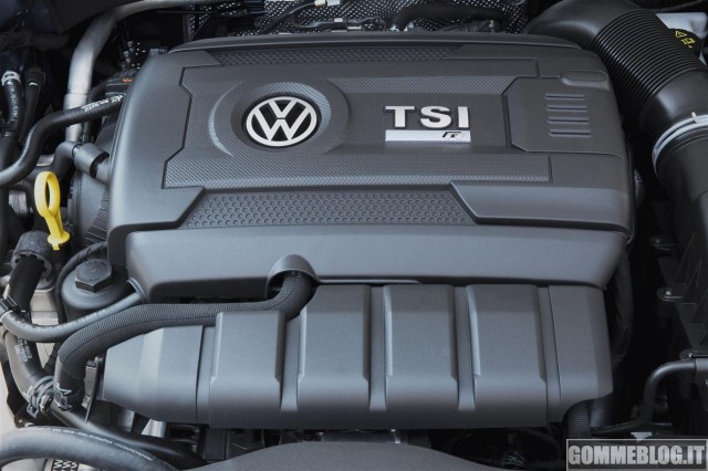 Motore turbo high-tech. La Golf R, proprio come l’attuale Golf GTI, monta un 4 cilindri di nuova concezione della serie EA888. Rispetto al modello precedente sono stati modificati numerosi dettagli tecnici, con l’obiettivo di ridurre consumi ed emissioni, aumentando nel contempo potenza e coppia. Il motore presenta, per esempio, una testata di nuova costruzione. Rispetto ai 230 CV della Golf GTI Performance, la Volkswagen ha migliorato le prestazioni di altri 70 CV, raggiungendo i 300 CV (da 5.500 fino a 6.200 giri) dando così vita a una delle motorizzazioni 4 cilindri più potenti al mondo. La coppia massima è stata aumentata di 30 Nm, raggiungendo quindi i 380 Nm sempre disponibili tra 1.800 e 5.500 giri. Per poter garantire questi valori, il TSI 1.984 cm3 di cilindrata è stato oggetto di un approfondito programma di sviluppo. Rispetto al motore della GTI, già estremamente agile, i seguenti componenti risultano modificati o di nuova concezione: tra gli altri ricordiamo testata (comprese valvole di scarico, guarnizioni delle sedi valvole e molle delle valvole), pistoni, valvole di iniezione ad alta pressione e turbocompressore a gas di scarico.