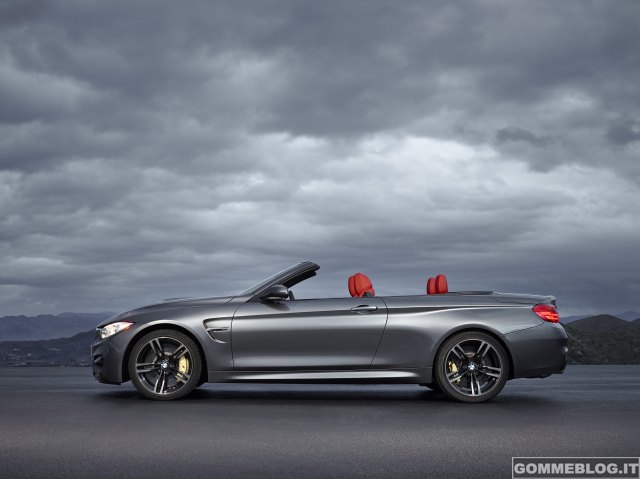 La BMW M4 Cabrio riprende l’andamento elegante delle linee del modello Cabrio della BMW Serie 4. Grazie al proprio linguaggio stilistico, a tetto aperto la vettura combina una silhouette dall’eleganza inconfondibile con proporzioni perfette e a tetto chiuso con una linea da coupé straordinariamente dinamica, senza montante B. Al contempo, la M4 Cabrio è immediatamente identificabile come membro della famiglia di modelli BMW M3/M4, come lasciano riconoscere il cofano motore dal caratteristico powerdome, i marcati specchietti retrovisori esterni dal design con base a doppie asticelle e i passaruota anteriori e posteriori fortemente bombati che si estendono sopra i cerchi in lega fucinati che montano pneumatici differenziati da 18 oppure 19 pollici (optional).