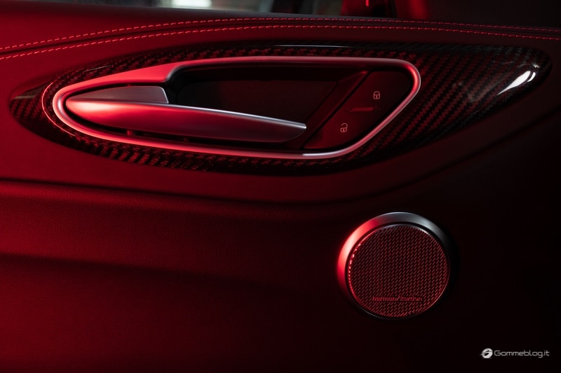 Osservandola dall’esterno e accedendo nell’abitacolo la sportività risulta avvolgente grazie anche al diffuso utilizzo del carbonio.