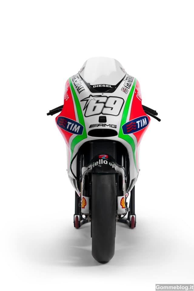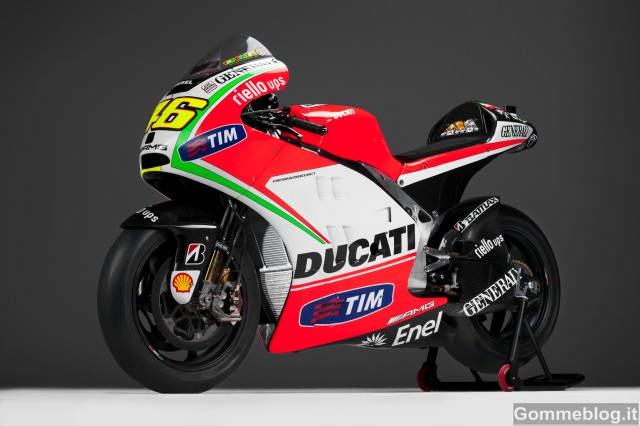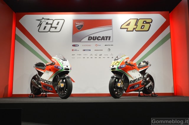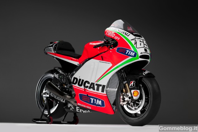 Ducati GP12: la nuova Desmosedici GP12 si svela in questo video in tutta la sua bellezza e dinamicità. Una moto nuova caratterizzata da una fascia tricolore che inizia ai lati del cupolino e prosegue sino ad abbracciare la parte bassa della carena. La nuova Ducati Desmosedici GP12 presenta una cilindrata mille di cilindrata, e rispetto alla versione 2011 risulta cambiata in molti particolari tutti nuovi da scoprire e provare. Obiettivo primario della nuova Ducati GP12 è chiaro: migliorarsi sempre di più e soprattutto esere guidata dal campione valentino Rossi, che quest’anno, se non rinnovato, terminerà il proprio contratto con Ducati. Ma scopriamo insieme le caratteristiche e lo sviluppo della nuova Ducati GP12 in questo video e in queste fantastiche foto.