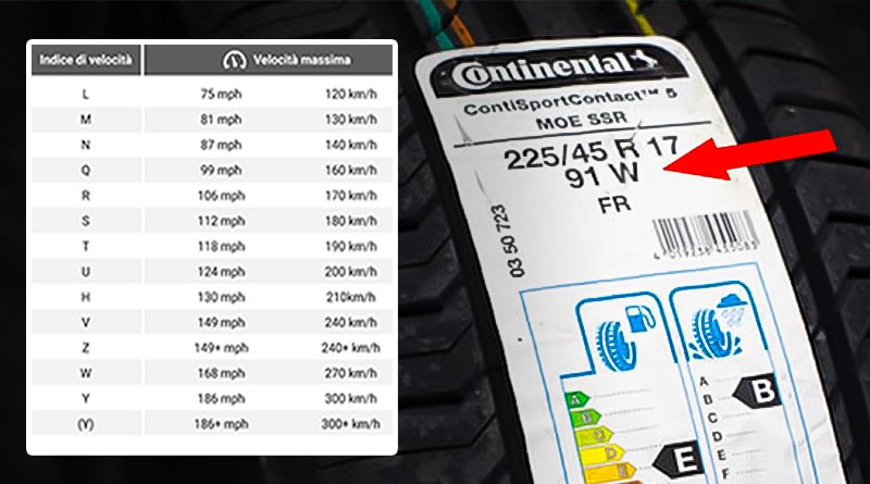 Il codice di velocità di un pneumatico (a volte indicato come “indice di velocità pneumatici”) indica infatti la velocità massima che quel pneumatico può sopportare.