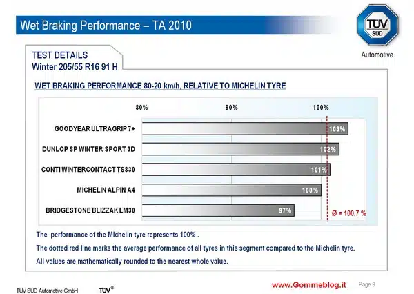 I pneumatici invernali sono sicuri sulla neve e in tutte le condizioni in cui la temperatura scende sotto i 7°C anche se con lievi differenze tra modelli.
