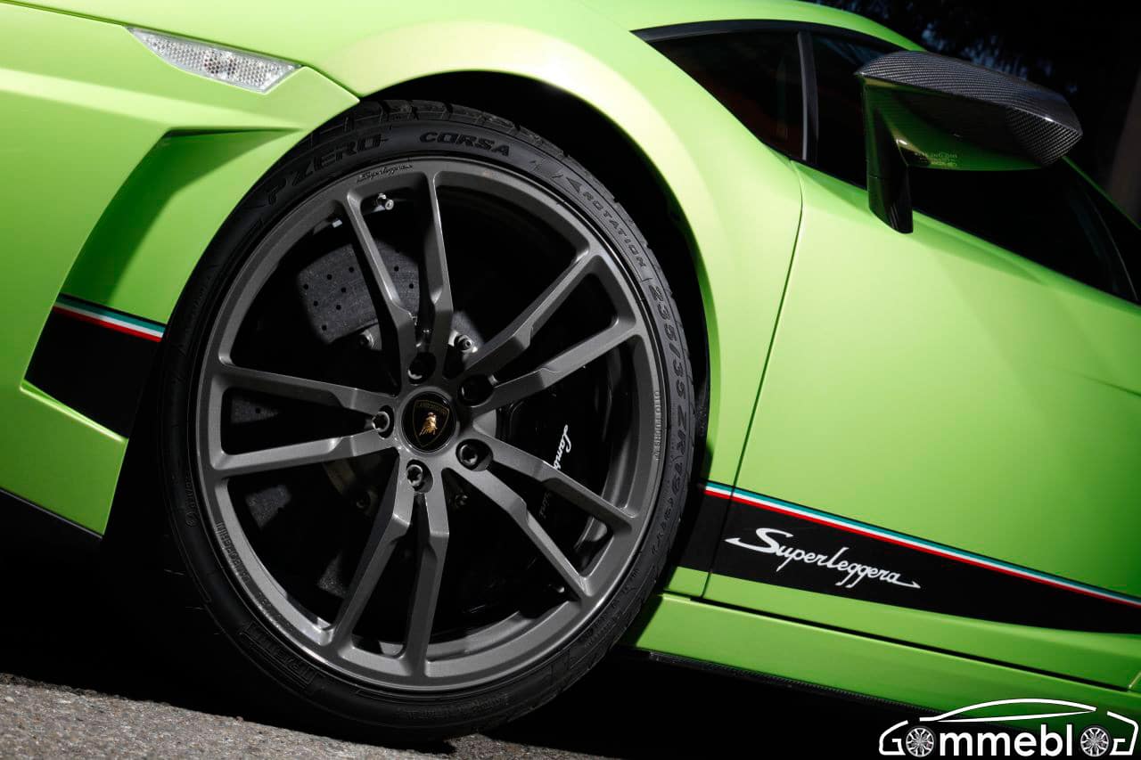 I pneumatici Pirelli PZero Corsa System avranno l’arduo compito  di scaricare a terra la bellezza di 570 cavalli tramite la trazione integrale della Superleggera. Per assicurare le prestazioni della Gallardo è stato necessario sviluppare pneumatici specifici; le misure, 235/35 all’anteriore e 295/30 al posteriore. I cerchi sono stupendi cerchi in alluminio forgiato da 19 pollici. Caratteristica di questi Pirelli PZero Corsa System, progettati e realizzati grazie alla notevole esperienza accumulata nel Lamborghini Blancpain SuperTrofeo,  è un battistrada direzionale per le ruote anteriori e un battistrada asimmetrico per i pneumatici posteriori.