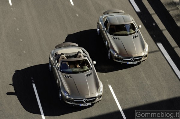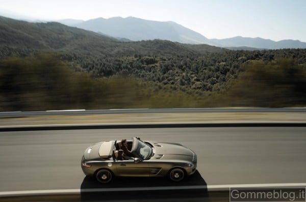 SLS AMG Roadster: report completo su tecnica e performance: AMG, il marchio Performance di Mercedes-Benz Cars, presenta una nuova vettura da sogno: la SLS AMG Roadster. Due anni dopo la fulminante partenza della “Ali di gabbiano” al Salone IAA 2009, adesso arriva la versione scoperta della supersportiva