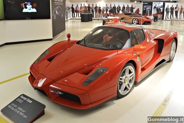 Enzo – Negli anni magici delle vittorie a ripetizione del Titolo Mondiale Piloti e Costruttori, nasce la Enzo. Siamo nel 2002 e il nome promette eccellenza. Ispirata alla F1 già nella linea, è la prima vettura stradale con il “manettino” sul volante, per variarne il comportamento su strada secondo il tracciato e le condizioni del fondo. Il motore V12 leggero e compatto, e i sistemi legati alla dinamica veicolo rispondono a questi impulsi proprio come la monoposto regolata dal pilota con i manettini sul volante. Lo sviluppo del sistema deriva dalla tecnica di Schumacher di modificare l’assetto della macchina curva per curva. Di qui la richiesta di comandi adatti a regolare la macchina più volte nello stesso giro. Nascono così il moderno volante delle F1 e il “manettino”, come lo chiamavano Squadra e pilota.