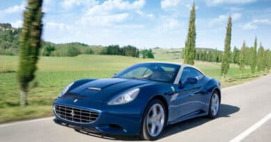 599XX Evo – La 599 non fa parte delle Supercar ma la versione XX entra di diritto in questo mondo, per motivi tecnici e simbolici. La Ferrari ha una straordinaria tradizione di vetture ad altissime prestazioni a motore anteriore. La 250 GTO è la più significativa ma non l’unica. È quindi interessante vedere affiancate, a 50 anni di distanza, due berlinette tanto raffinate tecnicamente e tanto prestazionali in pista. La 599XX all’esordio segnò il record sul giro del celebre e difficilissimo “Nordschleife”, il Circuito del Nürgburgring in versione da 22,8 chilometri. Sul piano tecnico la 599XX è un esempio di eccellenza: motore V12 aspirato da 730 cavalli, comportamento esemplare grazie alla distribuzione dei pesi – 47% anteriore e 53% posteriore – e al sofisticato sistema di supporto elettronico alla guida. L’aerodinamica, con ala posteriore mobile, contribuisce all’eccellenza delle prestazioni. È destinata solo alla pista.