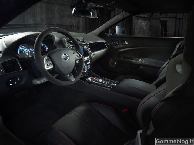 La XKR-S GT è disponibile nel colore Polaris White con grafiche esclusive e la scritta Jaguar R-S GT sul cofano motore. Gli interni neri – con accenti rossi – presentano sedili “Performance” elettricamente regolabili in 16 posizioni, rifiniti in pelle soft-grain Warm Charcoal e pelle scamosciata, con i loghi Jaguar e R-S GT integrati nello schienale. Il cielo e il volante di pelle scamosciata Jet, le leve di selezione delle marce al volante in alluminio, sono di serie. I caratteri sulle soglie d’ingresso e la consolle evidenziano l’esclusività della XKR-S GT.