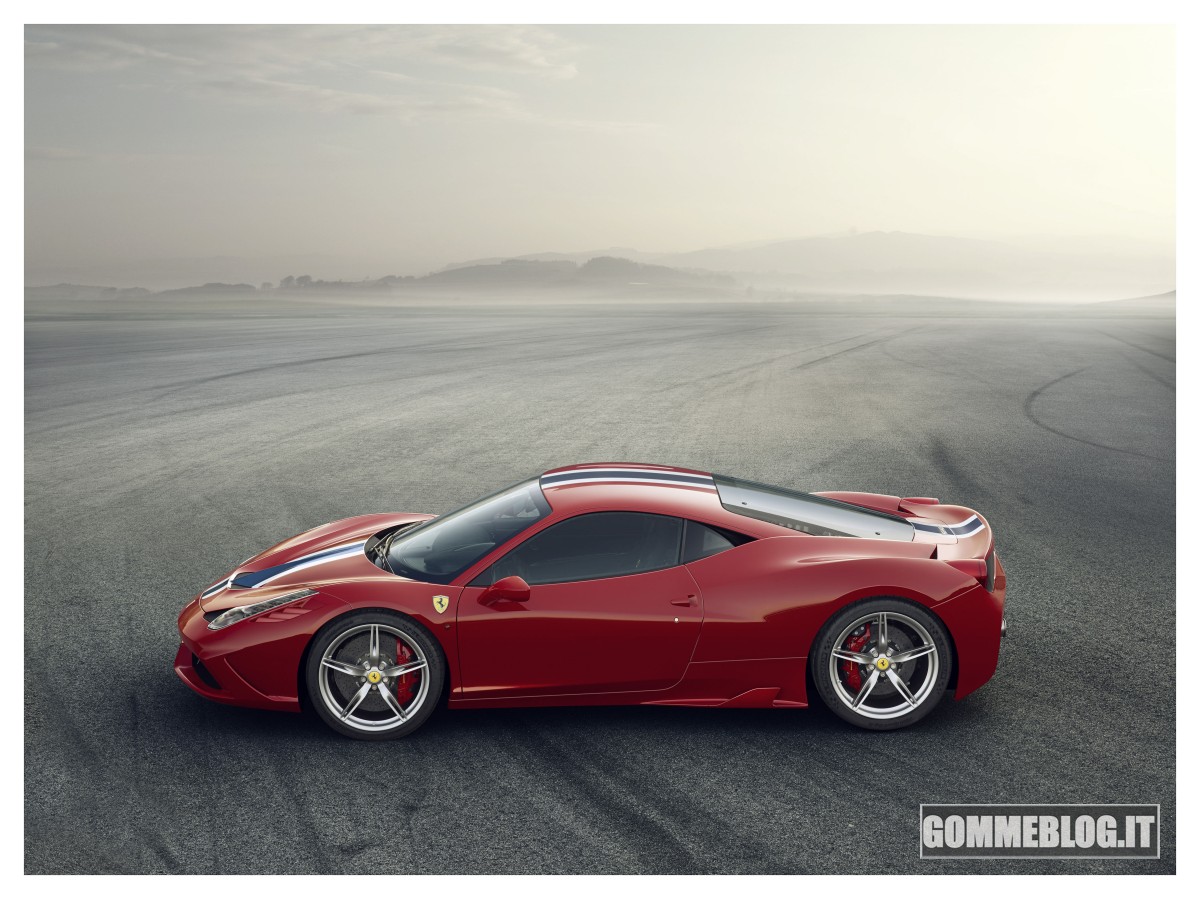 Lo sviluppo della vettura è avvenuto con gli pneumatici Michelin Pilot Sport Cup2, specificamente messi a punto attraverso un intenso programma di collaborazione che ha visto tra l’altro numerose sessioni di test congiunti in pista e al simulatore. Concepiti per la 458 Speciale, incrementano la performance sul giro singolo in condizioni di asfalto asciutto oltre che la costanza della prestazione nella sequenza di giri. Permettono inoltre di avvantaggiarsi della migliore aderenza su bagnato.