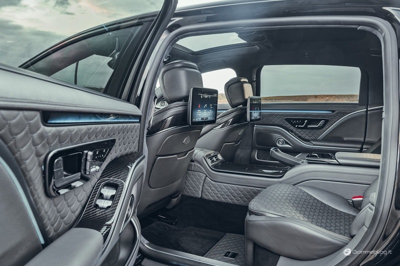 Come sulla carrozzeria, il carbonio aggiunge tocchi sportivi anche nell’interno. Questo include, tra le altre cose, elementi in carbonio “BRABUS Signature” sul volante, cruscotto, console centrale e pannelli delle porte. Anche i pedali sono dotati di pedali BRABUS in fibra di carbonio, che garantiscono sempre un funzionamento sicuro grazie ai loro perni in gomma integrati. Infine, esattamente 306 parti in plastica come interruttori, cornici e bocchette dell’aria sono arricchite con rivestimento “Shadow Chrome”.