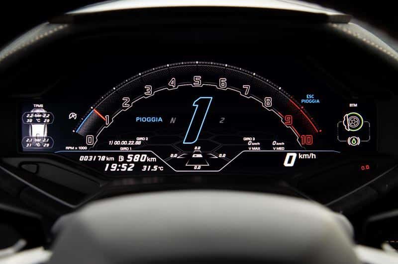 Il touchscreen della Huracán presenta una nuova grafica nell’interfaccia uomo-macchina (HMI) e gestisce le funzioni dell’auto, tra cui l’indicatore della modalità di guida, il sistema LDVI, le pressioni degli pneumatici e le temperature dei freni. Un sistema di telemetria completamente connesso consente ai conducenti al volante della Huracán STO di monitorare e registrare le proprie prestazioni e analizzare i dati tramite l’app Lamborghini UNICA.
