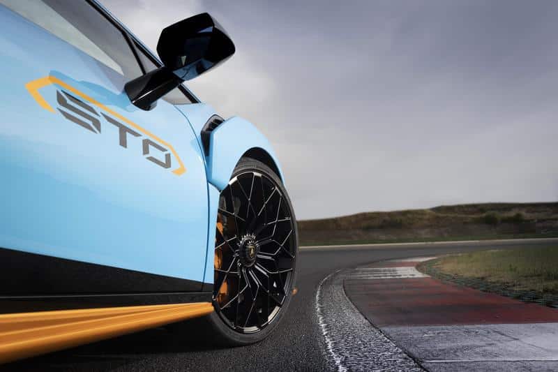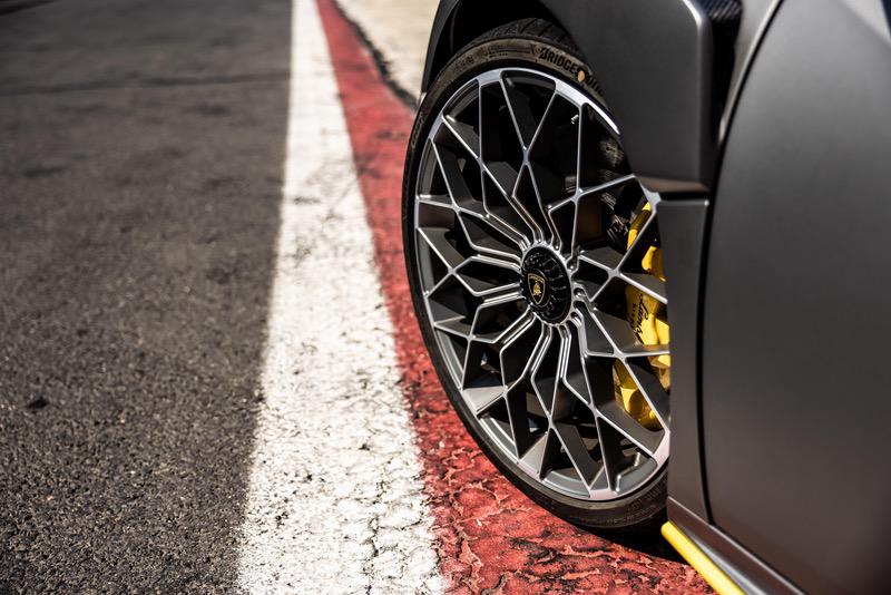 Il parabrezza della Huracán STO è più leggero del 20% rispetto alla Huracán Performante, mentre i cerchi in magnesio migliorano il rapporto resistenza/peso, contribuendo a ulteriori risparmi di peso rispetto alle leghe in alluminio con lo stesso carico. I cerchi in magnesio sono abbinati a pneumatici Bridgestone Potenza appositamente sviluppati, disponibili in due versioni: una per l’uso stradale e l’altra per un utilizzo più orientato alla pista.