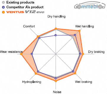 – Nuove mescole e lamelle per un maggiore drenaggio dell’acqua; migliorano così la trazione sul bagnato e la resistenza alla aquaplaning