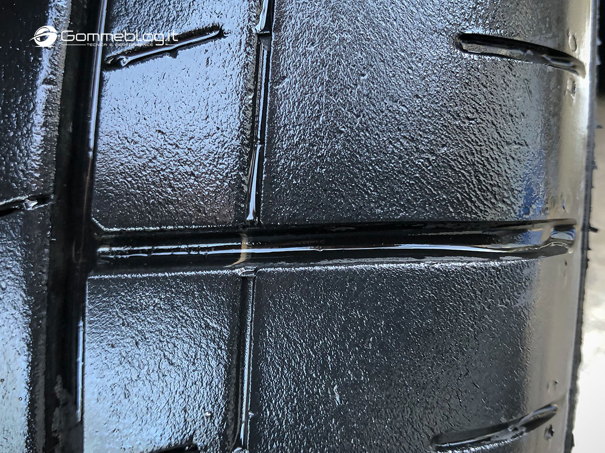 L’aumento del numero di intagli sul battistrada da una parte, e l’incremento dell’ampiezza e della profondità̀ degli incavi dall’altro hanno, invece, prodotto un’ottimizzazione del lateral aquaplanning e un miglioramento del 10% della capacità di espulsione dell’acqua.