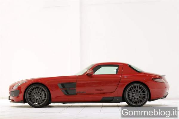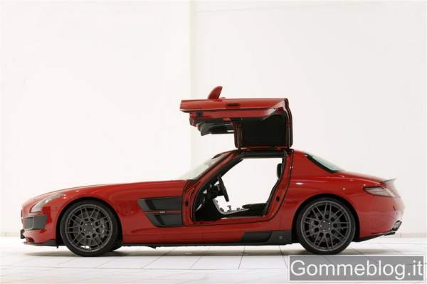 Nuova elaborazione in casa Brabus. Il tuner tedesco mostra al pubblco la nuova SLS AMG Widestar, auto caratterizzata da nuovi parafanghi posteriori (più larghi di 20 mm) in fibra di carbonio, un rinnovato kit estetico aerodinamico (anch’esso in fibra di carbonio), e assetto ribassato di 30 mm. Nuovo anche lo scarico, più leggero di 12 kg rispetto a quello di serie e in grado di far guadagnare ulteriori 10 CV alla sportivissima SLS. Il tuner si è dedicato anche al reparto ruote: nuovi infatti i cerchi in lega ultraleggeri (circa il 12% in meno rispetto ai cerchi in lega da 19 pollici di serie) in grado di montare pneumatici Pirelli PZero nelle misure 275/30 R20 all’anteriore e 295/25 R21 al posteriore.