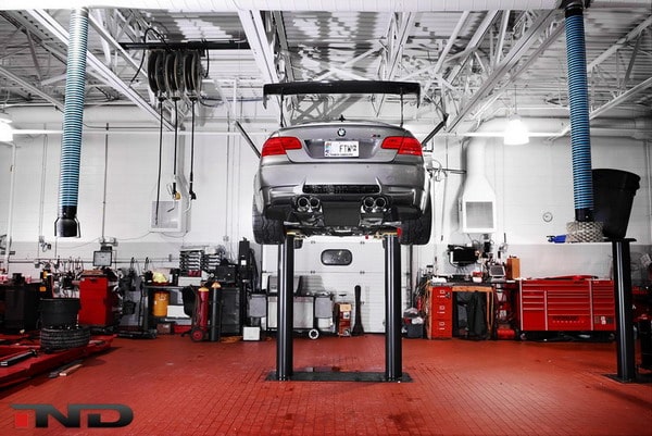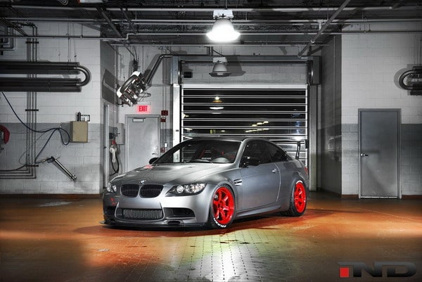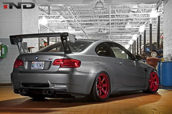 M3 JDM è una nuovissima elaborazione tuning su base BMW M3 E92 realizzata per un cliente da IND Distribution. Esteticamente spiccano i cerchi in lega Volk TE37 da 18 pollici. I cerchi sono equipaggiati con pneumatici Falken RT615K 275/35 R18 all’anteriore (canale 9.5J x 18″) e 315/30 R18 al posteriore (canale 10,5J x 18″). All’anteriore troviamo il frontale Bmw Motorsport, mentre dietro un alettone ed un diffusore della Varis. L’impianto frenante presenta un kit della Brembo GT-R maggiorato (per frenare la potenza del V8 sovralimentato).